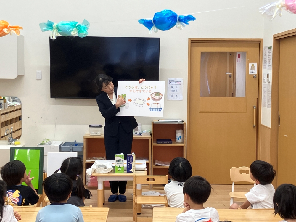 日本豆乳協会では、2024年度より、保育園での豆乳食育移動教室を開始しています。首都圏を中心に全国410ヵ所以上の保育施設を有する「にじいろ保育園(運営:ライクキッズ株式会社)」です。第18回目となる今回は、東京都杉並区にある「にじいろ保育園荻窪一丁目」を訪れました。