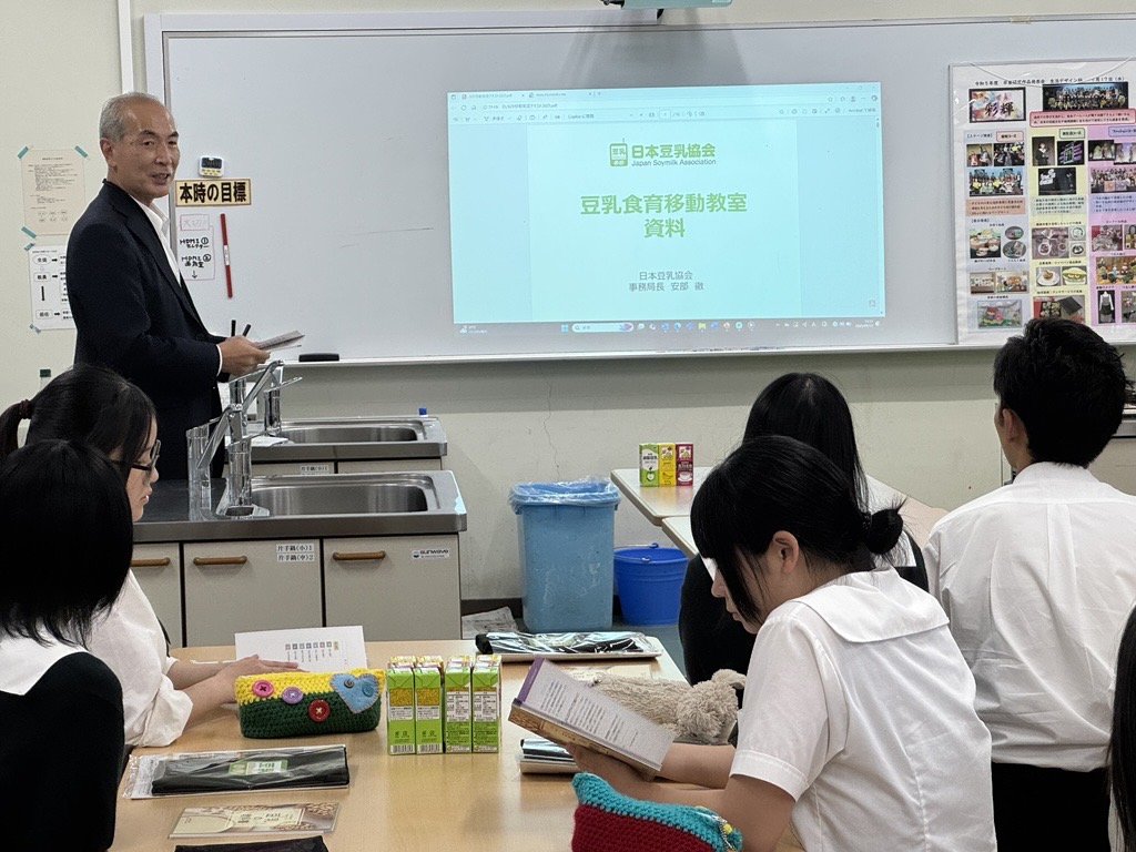 2025年9月12日、岐阜県立大垣桜高等学校において、日本豆乳協会の安部事務局長を講師に迎え、「豆乳食育移動教室」が開催されました。今回の授業は、2025年度の第5回目の実施となり、対象は生活デザイン科の高校1年生30名でした。