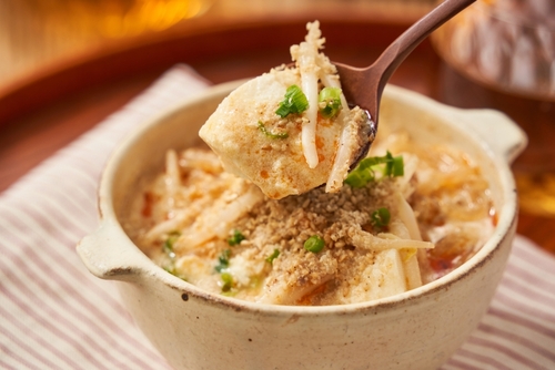 豆乳は植物性たんぱく質が豊富で、疲れた体をやさしく整えてくれます。さらに、具材は豚肉・白菜・豆腐・きのこ類が定番ですが、にんじんやキャベツ、水菜などの野菜をたっぷり加えることで、豆乳にはあまり含まれていないビタミンCも一緒に摂取することができます。定番の豆乳鍋は、ラー油、唐辛子、柚子胡椒などをプラスしても楽しむことができます。